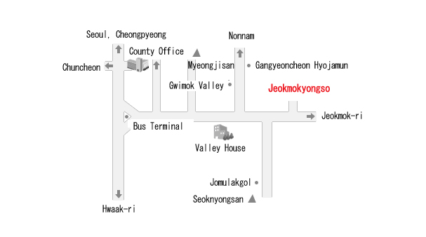 向着京畿道最北端被称为道马峙溪谷的地方,在加平赤木里方向市内公交终点站的龙水洞村经过 3.8 桥后,顺着无人溪谷不停 地向上走,会沉迷于沿着路边展开的极致景色。 这里是环境厅考核的道内唯一的清洁区域,生活着天然的纪念物鲑。 从 3.8 桥向上游 3km 的地方有叫做龙沼的沼泽地,这里水深而清,传说龙升天的时候被一个怀孕的女人看见了,龙就坠落下了 形成了这片沼泽。 经过龙沼,再经过一个小时不停的攀登,大大小小的瀑布和沼泽分布,最后到了巨大的瀑布前。据传,武官们以野菜为下酒 菜喝酒,在这里跳舞玩乐。被称为无酒债瀑布,此处景观秀丽,在炎夏也能感到凉意。