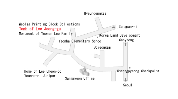 加平郡上面台封里山 115-1 番地就是月沙(号)李廷龟先生的墓。月沙先生的墓在最前面,后面是仁祖时期担任过礼曹判书,大提学的长孙李一相的墓,再后面是担任过礼曹判书,大提学的长子李明汉的墓。后世的墓这样排列的原因据传是因为按顺序安排的话,是会出逆贼的位置,因此用易葬来排列墓位。
